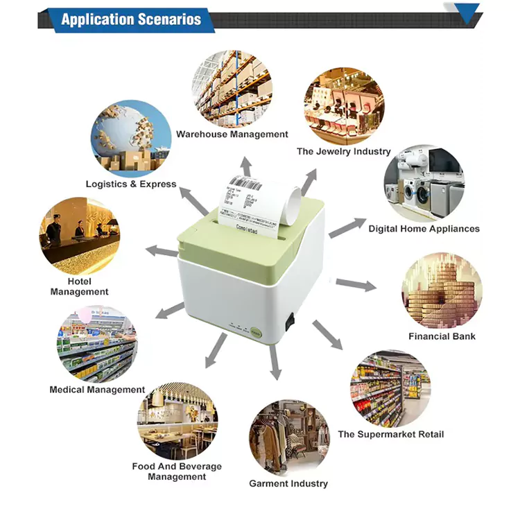 Nyomtatási sebessége 250 mm/s, effektív nyomtatási szélessége 72 mm vagy 64 mm. Több vonalkódot támogat, beleértve a UPC-A, EAN-13, CODE39 és CODE128 kódokat, így alkalmas különféle iparágakban, például vendéglátásban, áruházakban és szupermarketekben.